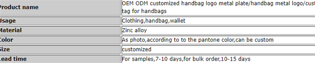 OEM ODM customized handbag logo metal plate 0.09-0.15usd